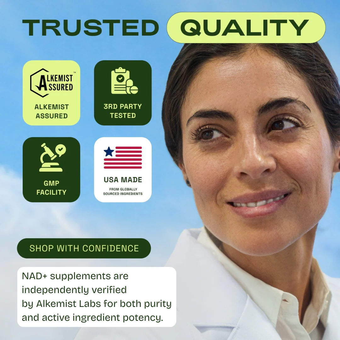 Formulated in the USA in GMP-certified facilities, NAD+ Core is trusted by thousands of customers looking to improve focus, sleep, skin, and longevity